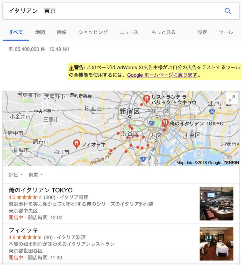 具体例をあげましょう。あなたがイタリアンレストランを探していて、Googleで「イタリアン」と入力して検索をかけたとします。すると、検索結果画面にはこう表示されました…