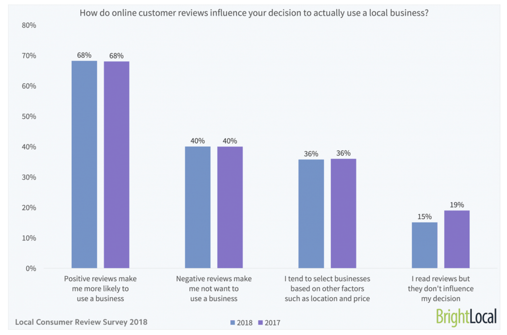 これは、BrightLocalという団体が行ったLocal Consumer Review Surveyという調査で明らかになりました。さらに言うと、お客さんの40%は最近2週間以内の口コミしか参考にしないそうです。